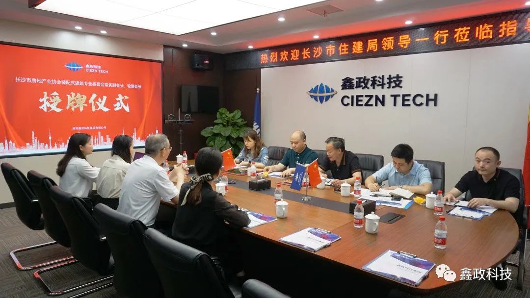 5月13日,授予鑫政科技集團“長沙市裝配式建筑專業(yè)委員會常務(wù)副會長”、“長沙市裝配式建筑專業(yè)委員會輪值會長”牌匾儀式在集團總部1號會議室舉行,長沙市住建局房地產(chǎn)開發(fā)處處長高建文、副處長蔣菁,長沙市住建局裝配式建筑促進中心副主任曾敏,長沙市房地產(chǎn)行業(yè)協(xié)會會長孫谷良,集團副總裁楊三青、總裁助理潘芬芬等領(lǐng)導(dǎo)見證了這一歷史時刻。